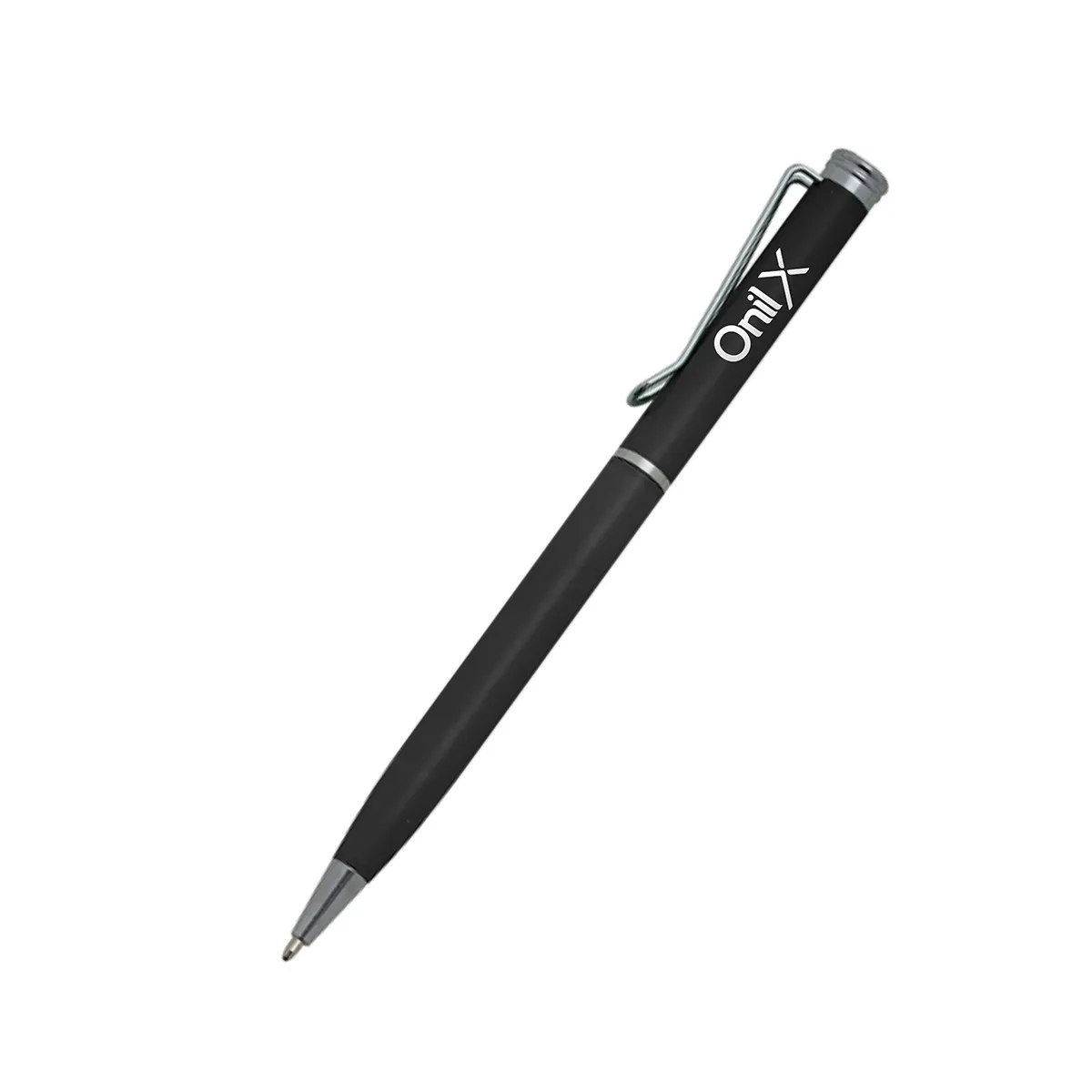 A Caneta Metálica Esferográfica Premium oferece elegância e funcionalidade com seu design sofisticado e estrutura robusta. Possui carga de tinta azul com mecanismo de acionamento por rotação, garantindo praticidade e agilidade na escrita. Com medidas confortáveis (comprimento: 13,6 cm, largura: 1,3 cm) e peso equilibrado de 21 g, proporciona excelente ergonomia e conforto durante o uso prolongado. Conta com área especial para personalização (aproximadamente 4,5 cm x 0,7 cm), sendo uma excelente escolha para brindes corporativos ou presentes diferenciados que valorizam a marca ou evento.